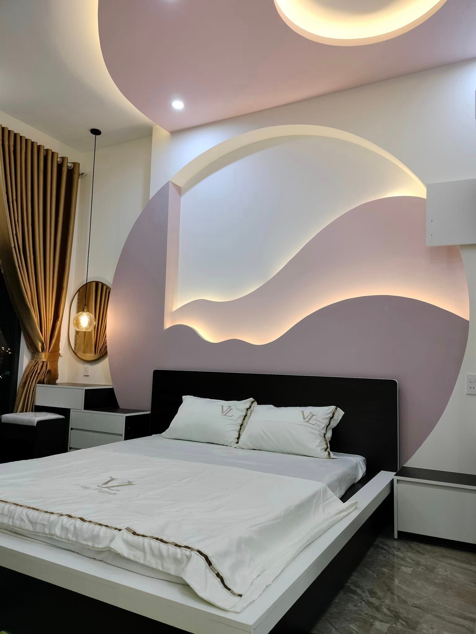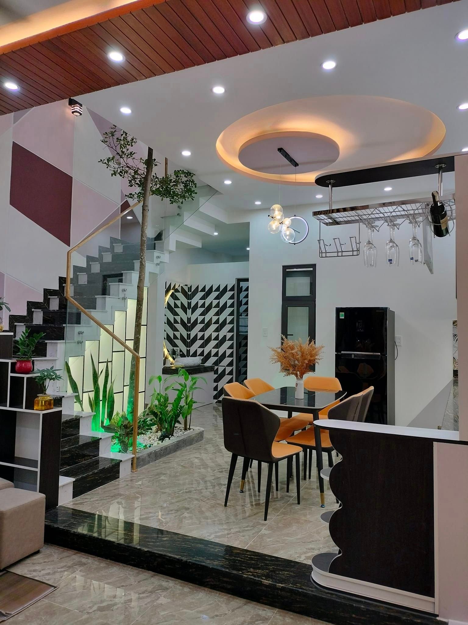 -Trước nhà có view sân rộng, đậu được xe 24 chỗ ngồi. có thể làm tiệc từ 10-15 bàn thoải mái.
